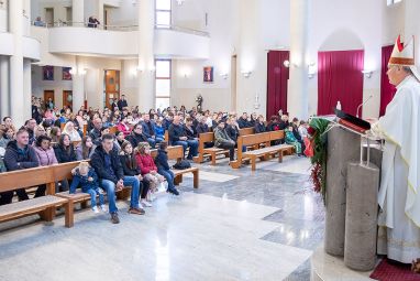 Srdačno pozdravljam njega, zatim Predsjednika Hrvatske biskupske konferencije, sav hrvatski episkopat, svećenike, redovnike i redovnice, predstavnike državnih i gradskih vlasti, predstavnike diplomacije, znanosti i kulture, sve vas, draga braćo i sestre u Kristu.