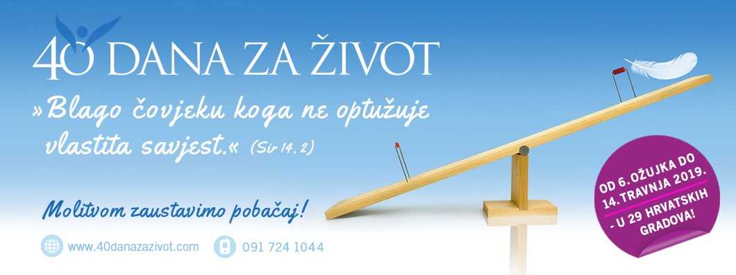 - Željeli smo ovu kampanju, u ovom milosnom vremenu i milosnoj godini, posebno naglasiti molitvu, post, pokoru, i vršenje zadovoljštine za grijeh pobačaja. Stoga, pozivamo sve ljude dobre volje, osobito vjernike, na redovitu molitvu, odricanje, post, svakodnevnu svetu Misu, čestu svetu ispovijed te primanje svete pričesti, kako bi grijeh pobačaja u našem narodu zauvijek nestao - rekao je Ante Čaljkušić, predsjednik Inicijative, koji se kroz otvoreni poziv na molitvu i post prije nekoliko dana već obratio moliteljima i prijateljima Inicijative. Cijeli poziv možete pročitati na linku: http://40danazazivot.com/2019/03/02/poziv-na-molitvu-post-i-pokoru/