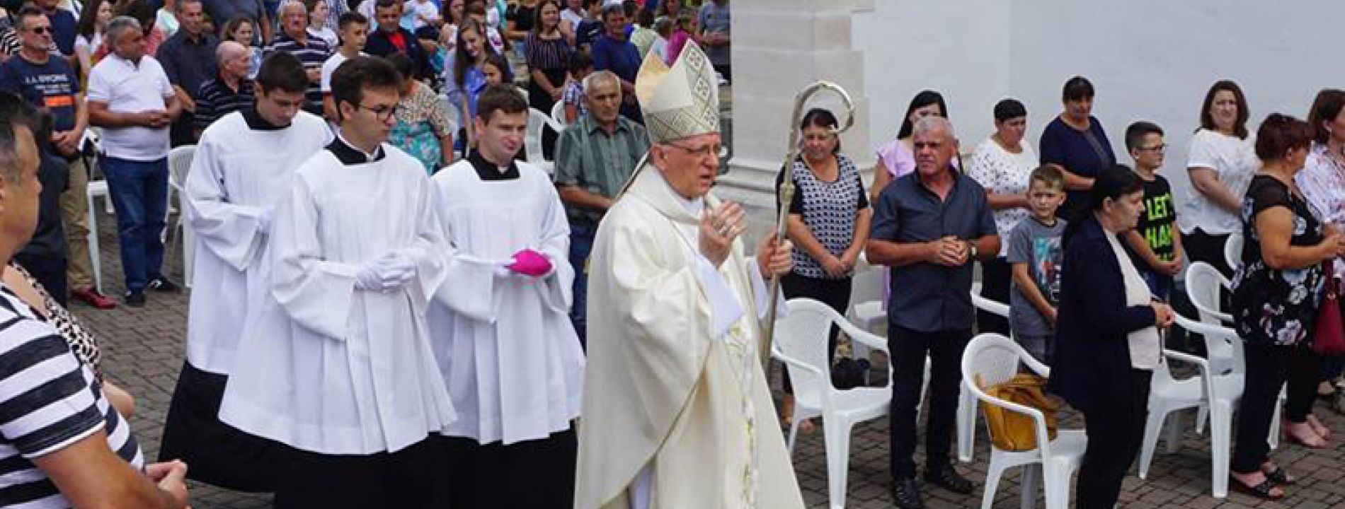Na svetkovinu Uznesenja Blažene Djevice Marije na nebo – Veliku Gospu, 15. kolovoza, obitelji s brojnom djecom iz župa Požeške biskupije deseti puta hodočastile su u Voćin. Euharistijsko slavlje u voćinskom svetištu za velik broj hodočasnika koji su se rasporedili izvan crkve predslavio je požeški biskup Antun Škvorčević.