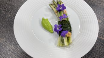 Chef Hrvoje Kroflin donosi proljetni jelovnik koji uključuje salatu od divljih šparoga, rižoto s medvjeđim lukom i škampima te raviole od čičoke s crnim lješnjakom.