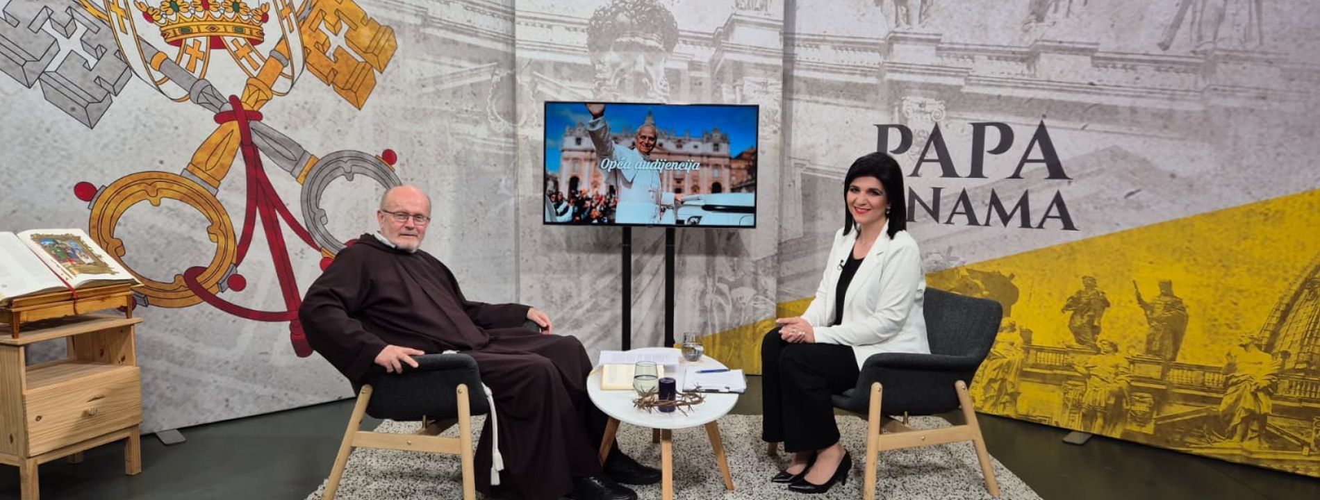 Poglavar Katoličke crkve u općim audijencijama obraća se svim ljudima dobre volje svojom porukom i katehezom, spajajući tradiciju i aktualni trenutak. Opća audijencija s papom Lavom XIV. u Vatikanu prilika je vjernicima da prodube svoja promišljanja, dobiju poticaj na svome putu vjere i prime papin blagoslov. Svim ljudima dobre volje ovo je prilika da se informiraju o učenjima Katoličke crkve, o smjeru u kojem ona ide danas, da se nadahnu porukama nade i mira te poslušaju Papine riječi izravno, a ne samo preko medija. Urednica i voditeljica je Tanja Maleš.