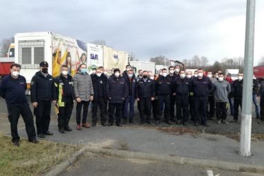 Konvoj koji su činila 4 kombi vozila te 16 kamiona i šlepera sa 43 vatrogasca, dopremio je 14 stambenih kontejnera i 4 sanitarna kontejnera, vatrogasnu opremu i građevinski materijal potreban za obnovu.