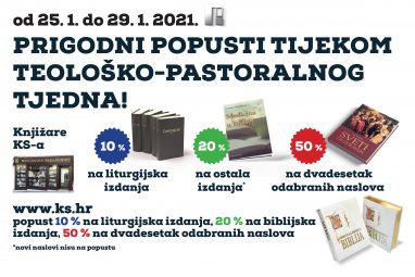 U svim knjižarama Kršćanske sadašnjosti u Hrvatskoj od 25. siječnja do 29. siječnja 2021. sva liturgijska izdanja bit će snižena 10 %, dok će sva ostala izdanja biti snižena 20 %.