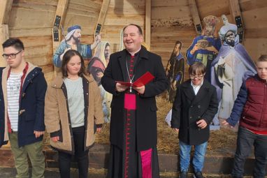 Nakon što se upoznao s radom udruge, biskup Palić blagoslovio je božićne jaslice na trgu.