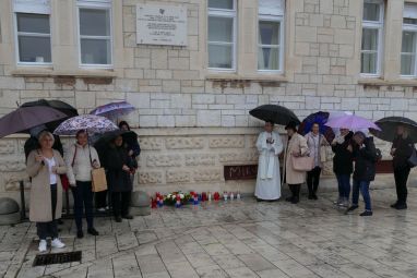 Obilježavanje je počelo polaganjem vijenaca i paljenjem svijeća kod Središnjeg križa na mjesnom groblju sv. Luke.