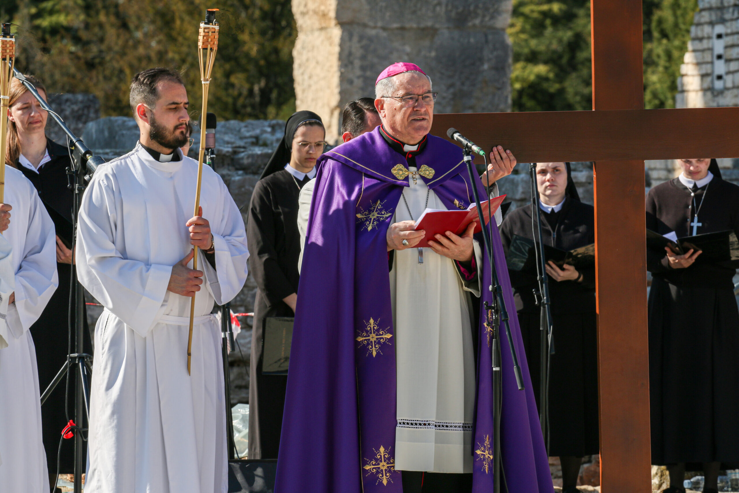 - U napetosti između prihvaćanja i odbacivanja, između vjere i nevjere, između ljudskih spletkarenja i Božjih planova, stoji križ, istinski znak Kristove ljubavi koji je osporavan unatoč tomu što je izvor spasenja. Kristova smrt s križem preobražava se u znak pobjede. Križ koji je pripravljen za mučenje Sina Božjega nije znak poraza nego vrhunac darivanja i Božje ljubavi prema palim i izgubljenim ljudima. Križ, koji je bio znak smrtne osude i mučenja, nije više teret nego je postao put iz patnje prema uskrsnuću, put iz tame prema svjetlu. U križu prepoznajemo Boga koji je ljubav, Boga koji se približio čovjeku, ušao u našu bol, preobrazi ju i učinio snagom za novi život (...)