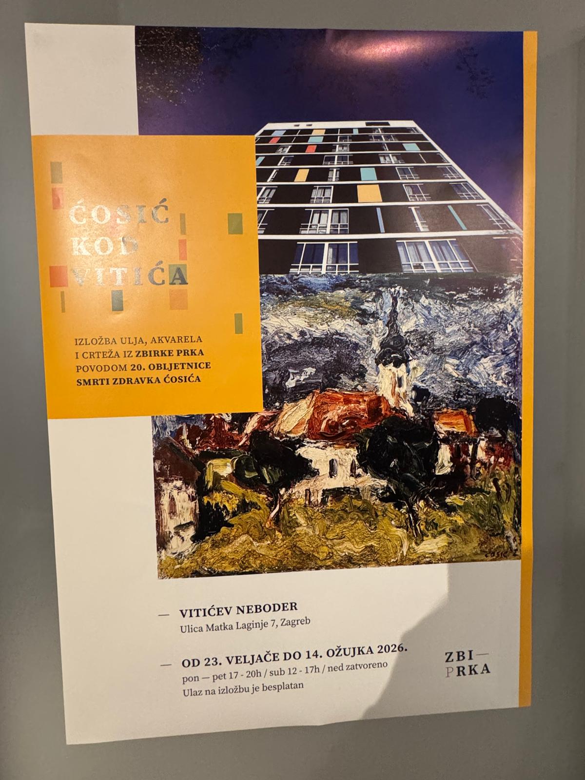 Znameniti zagrebački Vitićev neboder postao je mjesto posebnog kulturnog susreta. Točno na dvadesetu godišnjicu smrti slikara Zdravka Ćosića, otvorena je izložba pod nazivom „Ćosić kod Vitića“, koja publici nudi intiman i dosad neviđen uvid u stvaralaštvo ovog vrsnog umjetnika. Okosnicu postava čini bogata zbirka primarijusa Matije Prke, a uz već poznate akvarele, ulja i crteže, posjetitelji imaju rijetku priliku vidjeti i petnaestak djela koja se po prvi put izlažu javnosti.