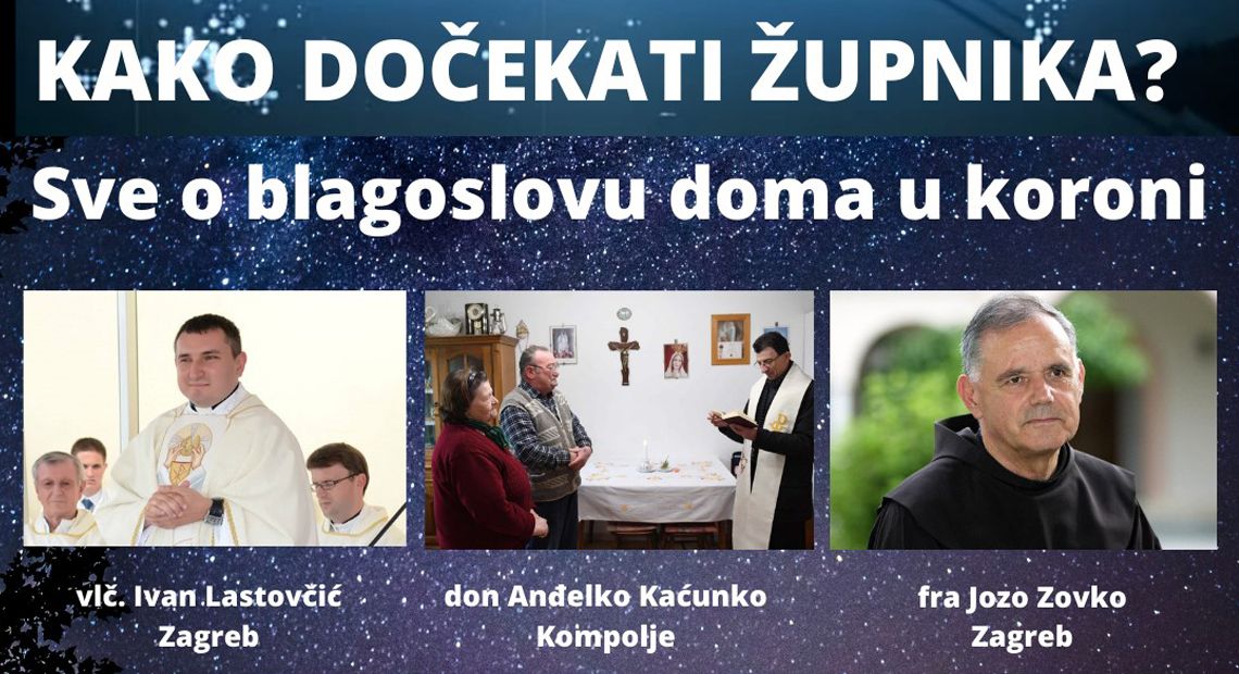 Nije lako pandemiji s nama! Crkva, usprkos svemu, ne odustaje od blagoslova obitelji i doma, no prilagodit će se uvjetima. O tome kako će izgledati blagoslov u sklopu epidemioloških mjera, večeras ćemo razgovarati s vlč. Ivanom Lastovčićem, župnikom sv. Ivana Krstitelja u Novoj Vesi, u Zagrebu (koji je i sam prebolio koronavirus, pa sada oboljelima dijeli sakramente!), te don Anđelkom Kaćunkom, župnikom ličkih župa Kompolje i Brlog, koji će nam reći kako se s koronavirusom nose izvan gradova i kako će izgledati njegov blagoslov kuća ove godine.