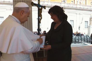 Na tom putu kao primjer istaknuo je sveticu dana, sv. Katarinu Sijensku, crkvenu naučiteljicu, ''ženu koja je bila oduševljena Kristom, koja je u Kristu voljela siromahe, koja je bila službenica mira, žena koja je povezivala, žena koja je voljela Crkvu''.