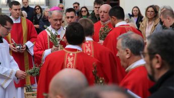 Misno slavlje započelo je blagoslovom grančica ispred bogoslužnog prostora nakon čega je uslijedila procesija u bogoslužni prostor gdje se nastavilo misno slavlje.