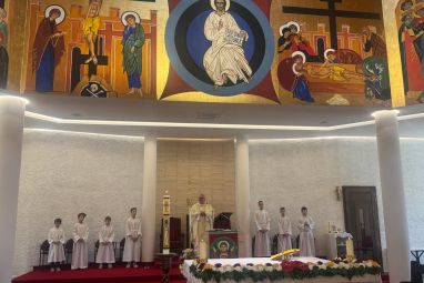 Mons. Francetić izrazio je radost pripređenim postamentima izložbe te apostrofirao citat iz Starog zavjeta (1 Izaija 62,6): 'Na zidine tvoje, Jeruzaleme, stražare sam postavio.' Na mjestu gdje je izložba postavljena, nekada je stajao dio gradskog zida, a danas tu stoji Gospa, odnosno izložba posvećena našoj nebeskoj Majci, rekao je mons. Francetić te zahvalio autorima izložbe na uloženom trudu, kao i dobrotvorima u realizaciji izložbe.