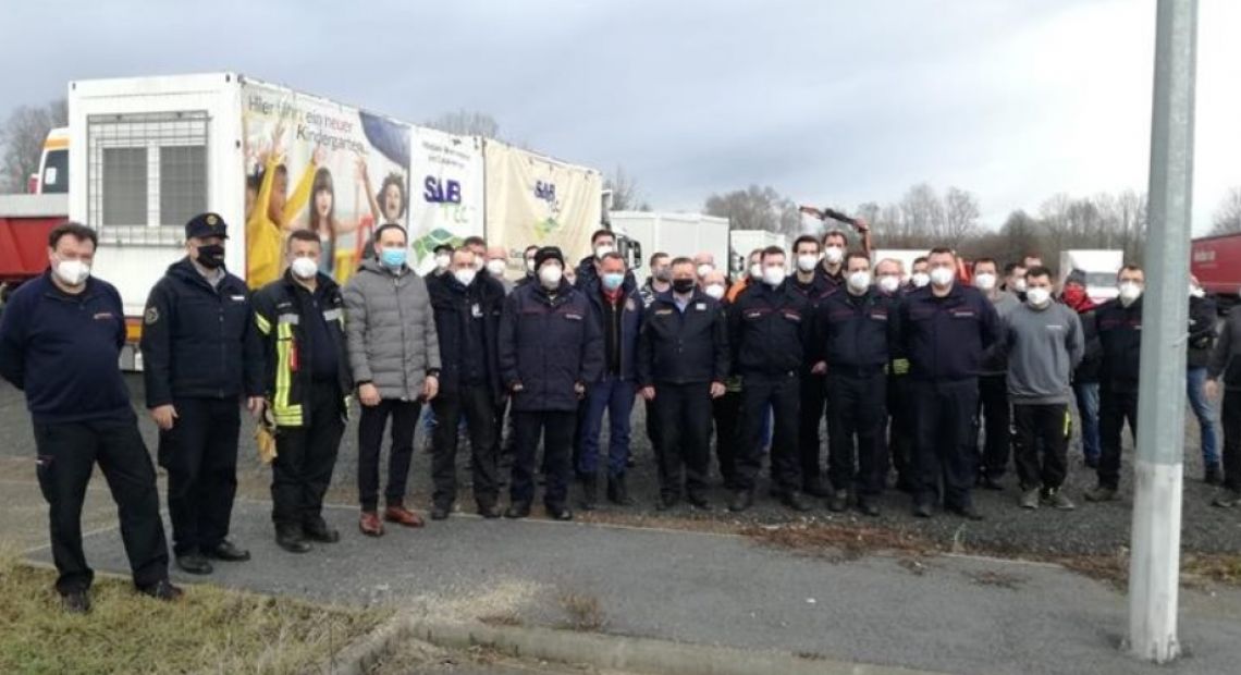 Konvoj koji su činila 4 kombi vozila te 16 kamiona i šlepera sa 43 vatrogasca, dopremio je 14 stambenih kontejnera i 4 sanitarna kontejnera, vatrogasnu opremu i građevinski materijal potreban za obnovu.