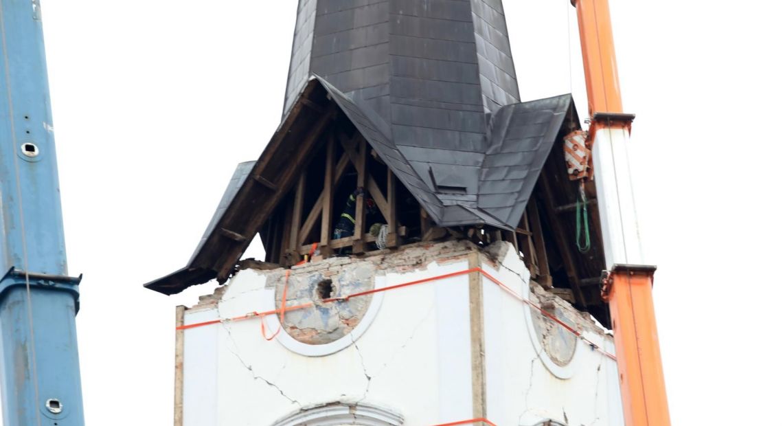 – Započeli smo uklanjanje tornja sa zvonika katedrale u Sisku. Skidanje se radi u fazama. Prva je faza uklanjanje ostataka žbuke i cigle te osiguranje gurtnama zidanog zvonika od urušavanja. Druga je faza skidanje križa s tornja i treća je faza osiguranje samog tornja i skidanje istog u cijelosti. Skidanje tornja vrši se na sličan način kao i na zagrebačkoj katedrali. Danas se planira izvršiti treća faza uklanjanja cijelog tornja, i nakon toga uklanjanje zvona iz zvonika. Radove izvode djelatnici JVP- Grada Zagreba, specijalistički tim za spašavanje iz dubina i s visina. Spašavanje iz ruševina odrađuje se u suradnji sa JVP-om Grada Siska, poduzećem Mamut Zagreb, PU Sisačko-moslavačka i djelatnika župe – rekao je zapovjednik Javne vatrogasne postrojbe Grada Zagreba, Siniša Jembrih.