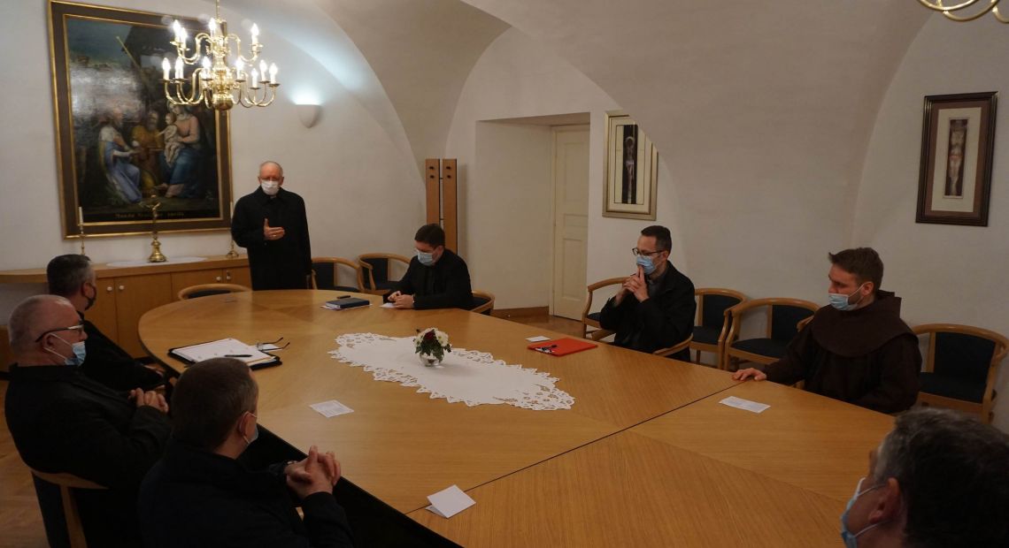 Nakon molitve, biskup Antun pozdravio je dušobrižnike, napose fra Kristijana, istaknuvši njegovu stručnost i iskustvo u bolničkom pastoralu u petstoljetnom služenju bolesnicima Reda milosrdne braće kojem on pripada. Podsjetio je da se nalazimo u izvanrednom stanju zbog ugroze koronavirusom, te je rekao da smo u svakodnevnom pastoralnom djelovanju svjedoci kako taj virus teško pogađa neke ljude, i da je s naše strane potrebno razmišljati na koji način primjenjivati načelo za koje se zauzimamo u pastoralnom pristupu Požeške biskupije: 'ništa ne dokidati, nego prilagoditi'.