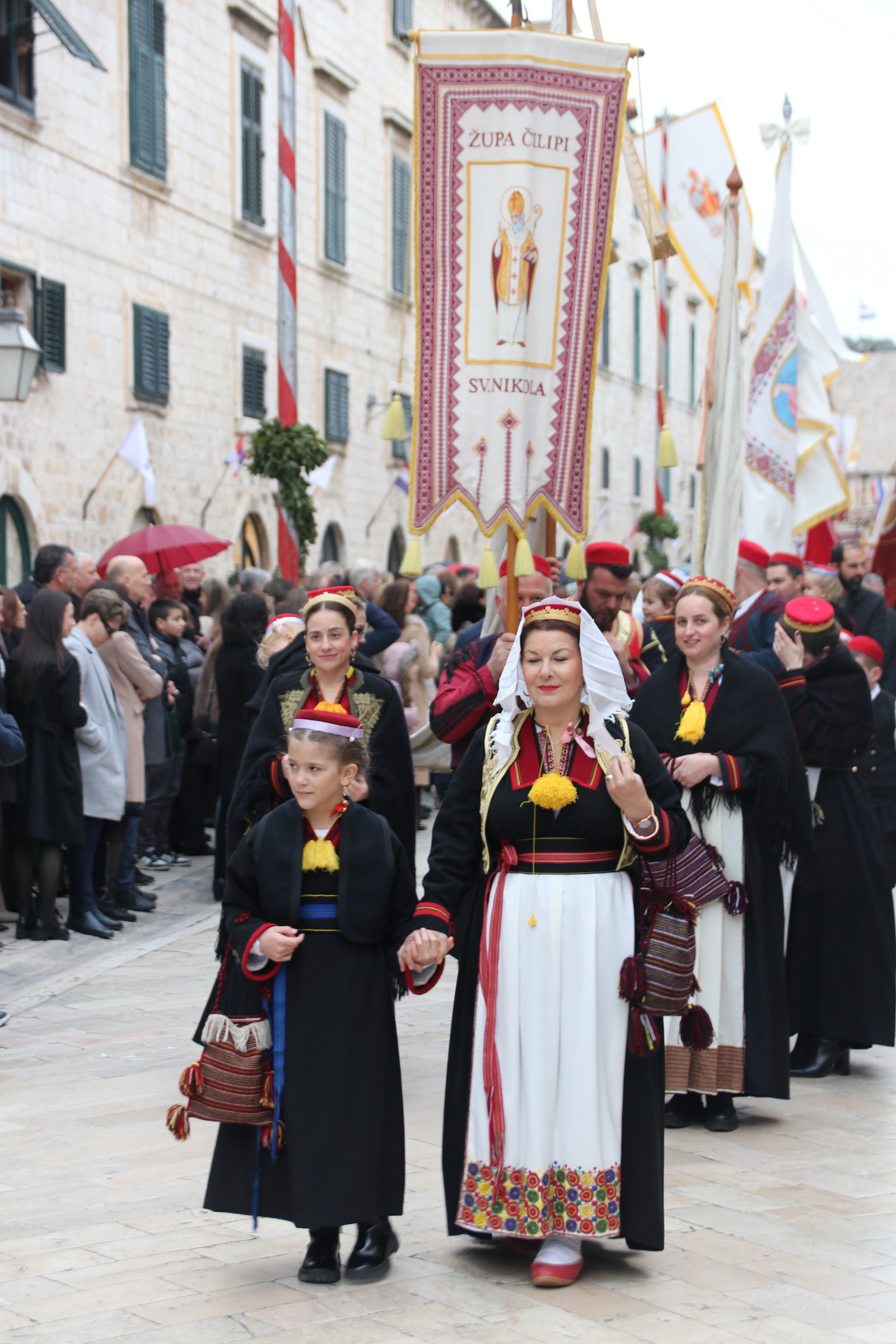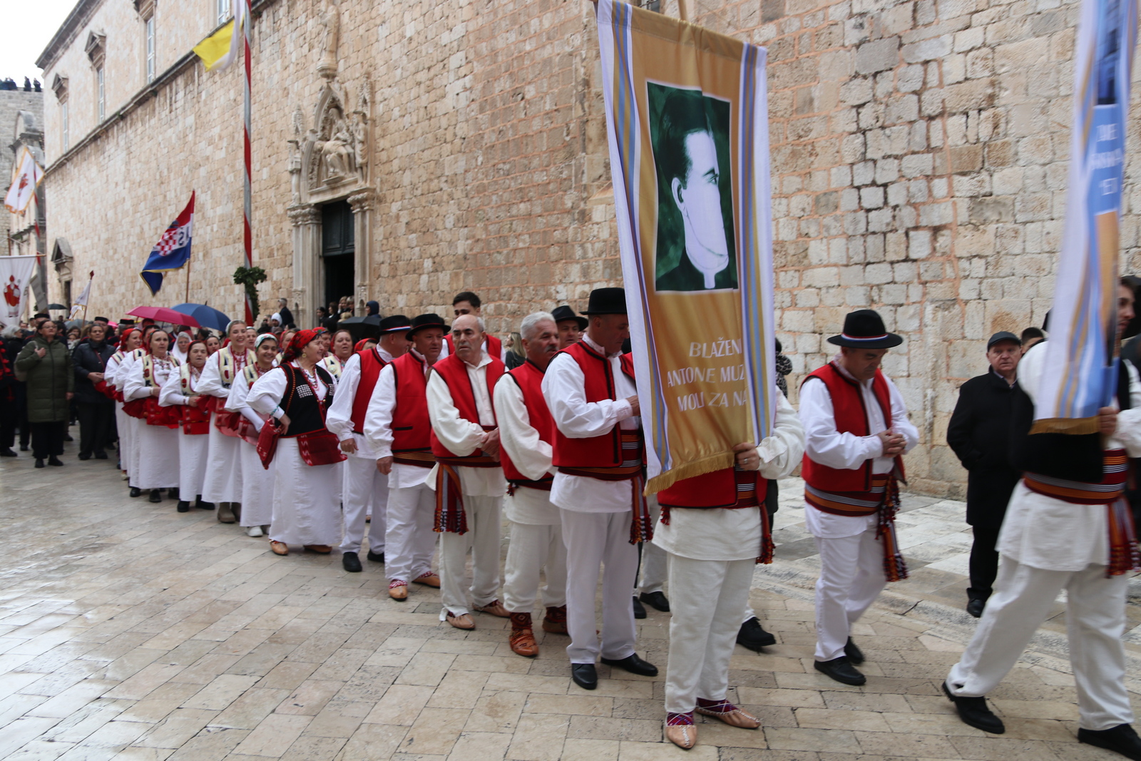 U procesiji su sudjelovale župe i razne skupine pod svojim barjacima, a mnogi vjernici bili su obučeni u narodne nošnje svoga kraja, dodatno povezujući procesiju s proteklim stoljećima štovanja armenskog sveca. Sv. Vlaho postao je dubrovački zaštitnik još krajem 10. stoljeća kada se, prema pobožnoj predaji, ukazao svećeniku Stojku kako bi spasio Dubrovnik od napada neprijatelja.
