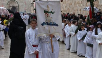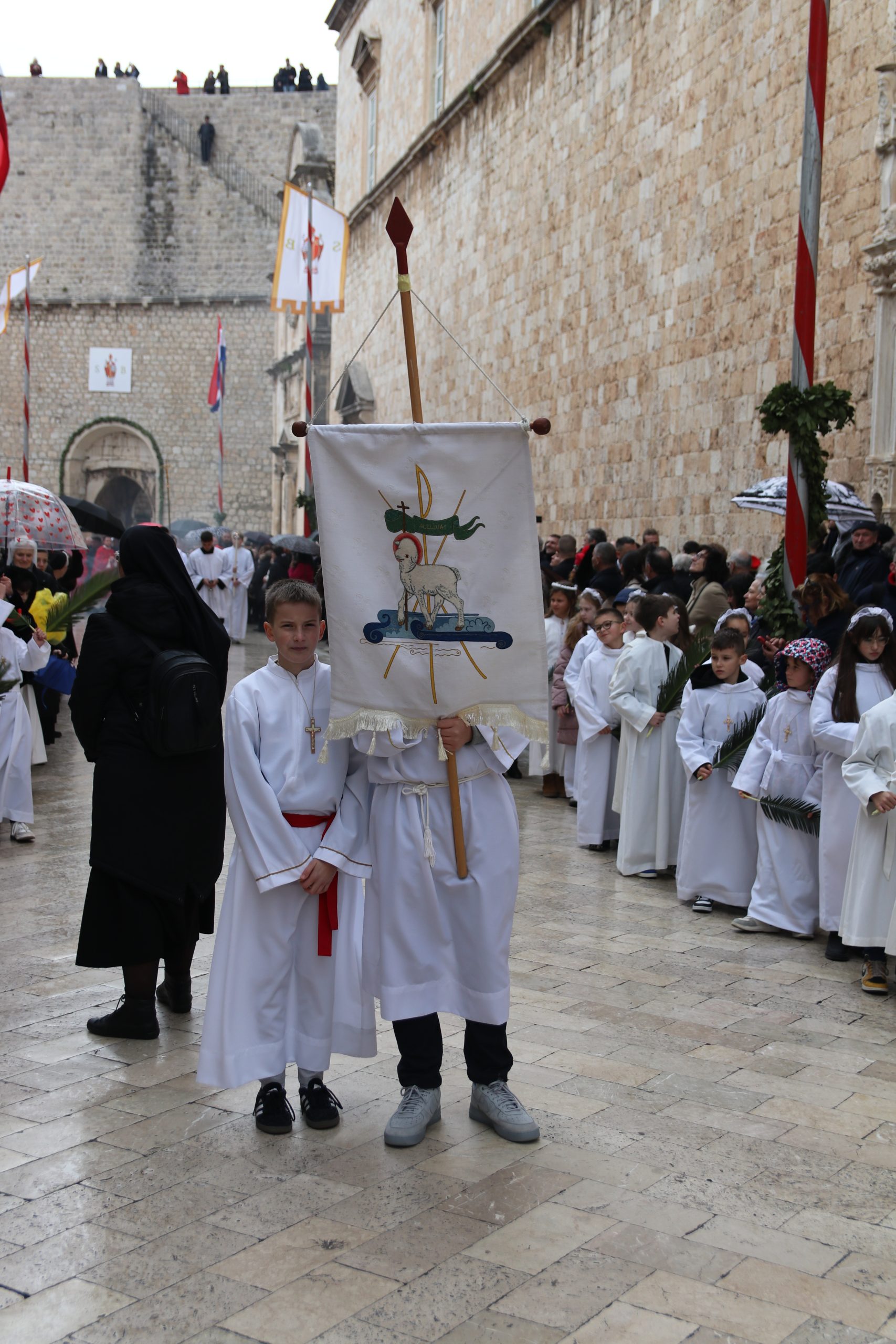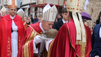 U 15.30 sati uslijedilo je pozdrav barjaka biskupima ispred glavnog ulaza u katedralu.