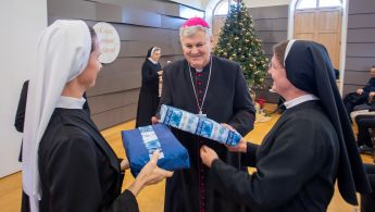 Uime redovničkih zajednica biskupa je pozdravila s. Gordana Igrec. ''Ova je godina i za Vas, oče biskupe, bila posebna zbog značajnih obljetnica koje su obilježile Vaš život i, po Vama, život naše biskupije. Zato nas ova prigoda posebno raduje jer možemo zahvaliti Gospodinu za dar Vašega života, za dar svećeničkoga poziva i služenja Crkvi u povjerenim Vam službama, posebno za Vaše služenje, već 15 godina na čelu Sisačke biskupije. Ovaj naš susret prigoda je u kojoj Vam želimo izraziti i našu zahvalnost za očinsku i pastirsku brigu za sve Bogu posvećene osobe u Sisačkoj biskupiji, za odvojeno i darovano vrijeme za susrete s nama'', poručila je s. Gordana. Biskupu je Božić čestitala i dobre mu želje uputila ravnateljica Katoličke osnovne škole u Sisku, s. Smilja Čirko, zahvalivši i brojnim dobročiniteljima koji su školu, kako je istaknula, opremili ''od vrha do dna''. ''Dragi biskupe, mudrost kojom vodite biskupiju, istina koju neumorno promičete, darežljivost koju rasipate, osjetljivost koju pokazujete prema siromašnima i potrebitima, zauzetost za pravo i pravdu, ljubav prema Bogu, Crkvi i domovini neka se u novoj 2025. umnoži. Novorođeni Kralj, koji se nije bojao postati čovjekom, udijelio Vam zdravlje i snagu da biskupiju i vjernike, uz Njegovu pomoć, vodite hrabro i neustrašivo'', zaželjela je s. Smilja.