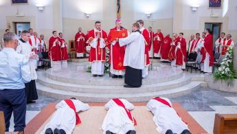 Sisački biskup Vlado Košić predvodio je u subotu, 29. lipnja, svečano misno slavlje u bazilici sv. Kvirina u Sisku, tijekom kojeg je za svećenike zaredio Franu Bijelića iz Popovače, Ivana Sandrina iz Kutine i Damira Vrbešića iz Kuševca.