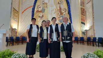 Nakon svete Mise druženje je nastavljeno u župnom atriju uz kolače i glazbeni program KUD-a Mošćenica.
