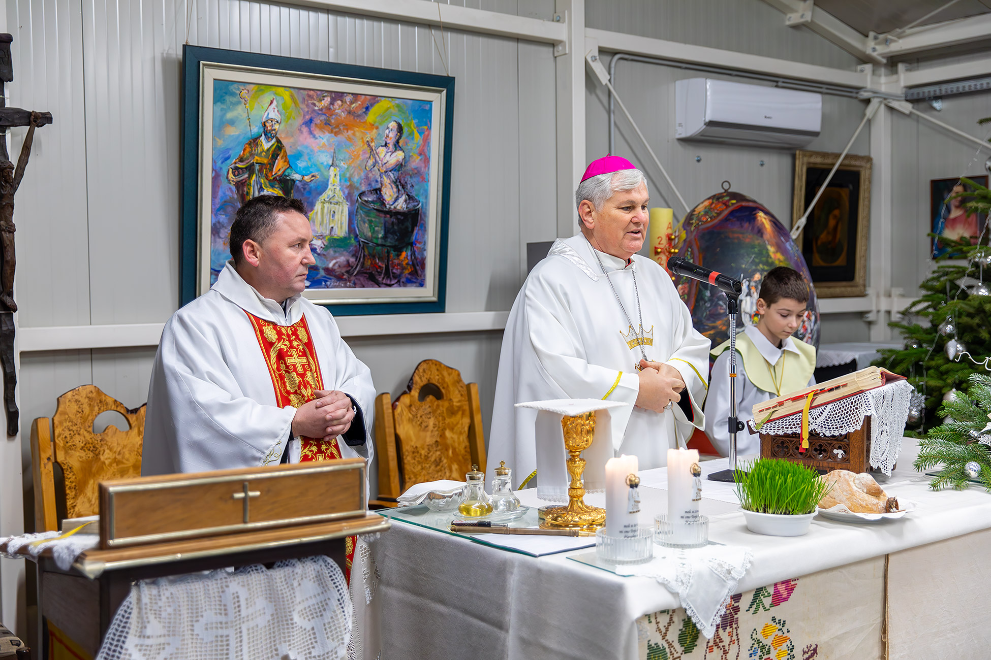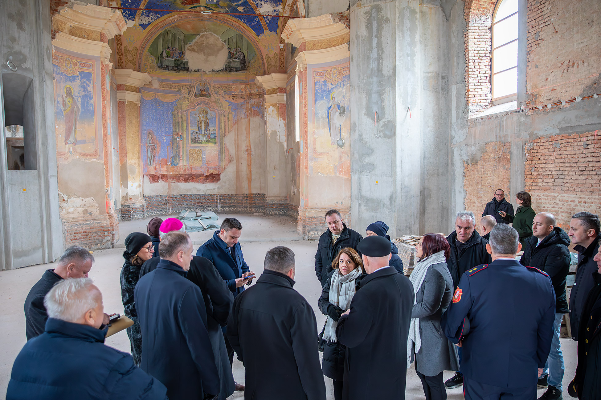 Govoreći o obnovi, biskup se osvrnuo na stradanje sakralnih objekata, istaknuvši da je u potresu oštećeno 28 župnih crkava. Zahvalio je ministru Bačiću i ministrici Nini Obuljen Koržinek te predstavnicima Ministarstva kulture, naglasivši da je prepoznata potreba da se, uz obnovu javnih zgrada, škola, bolnica, kuća i novih stambenih zgrada, sustavno obnovi i sakralna baština.