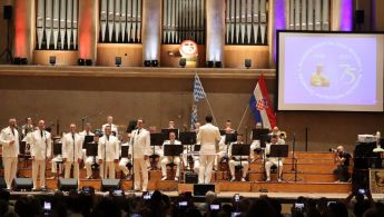 Koncert je na oduševljene svih prisutnih u dvorani održala Klapa ''Sveti Juraj'' i Orkestar Hrvatske ratne mornarice.