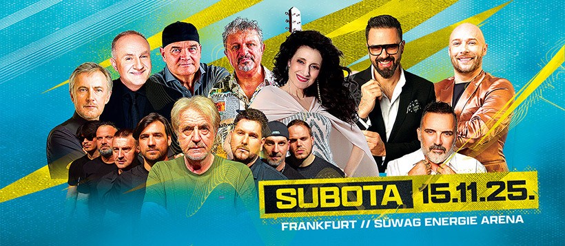 U frankfurtskoj Suwag Energie Areni 15. 11. 2025. nastupaju: Doris Dragović, Petar Grašo, Hrvatske ruže, Grupa Vigor, Mate Bulić, Dalmatino, Toni Cetinski, Miroslav Škoro,TS Dukati i obećavaju koncert za pamćenje.