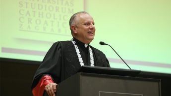 Nakon misnog slavlja u bazilici sv. Antuna Padovanskog na Svetom Duhu, svečani program za početak nove akademske godine nastavljen je susretom studenata i djelatnika u Auli magni Hrvatskog katoličkog sveučilišta.