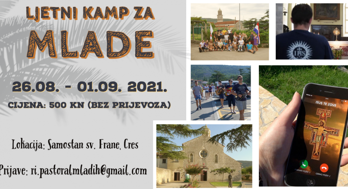 Ured za pastoral mladih Riječke nadbiskupije i ove godine organizira duhovno-rekreacijski kamp za mlade. Kamp će se održati na otoku Cresu u samostanu sv. Frane od 26. kolovoza do 1. rujna, a cijena je 500 kn, što ne uključuje troškove prijevoza.