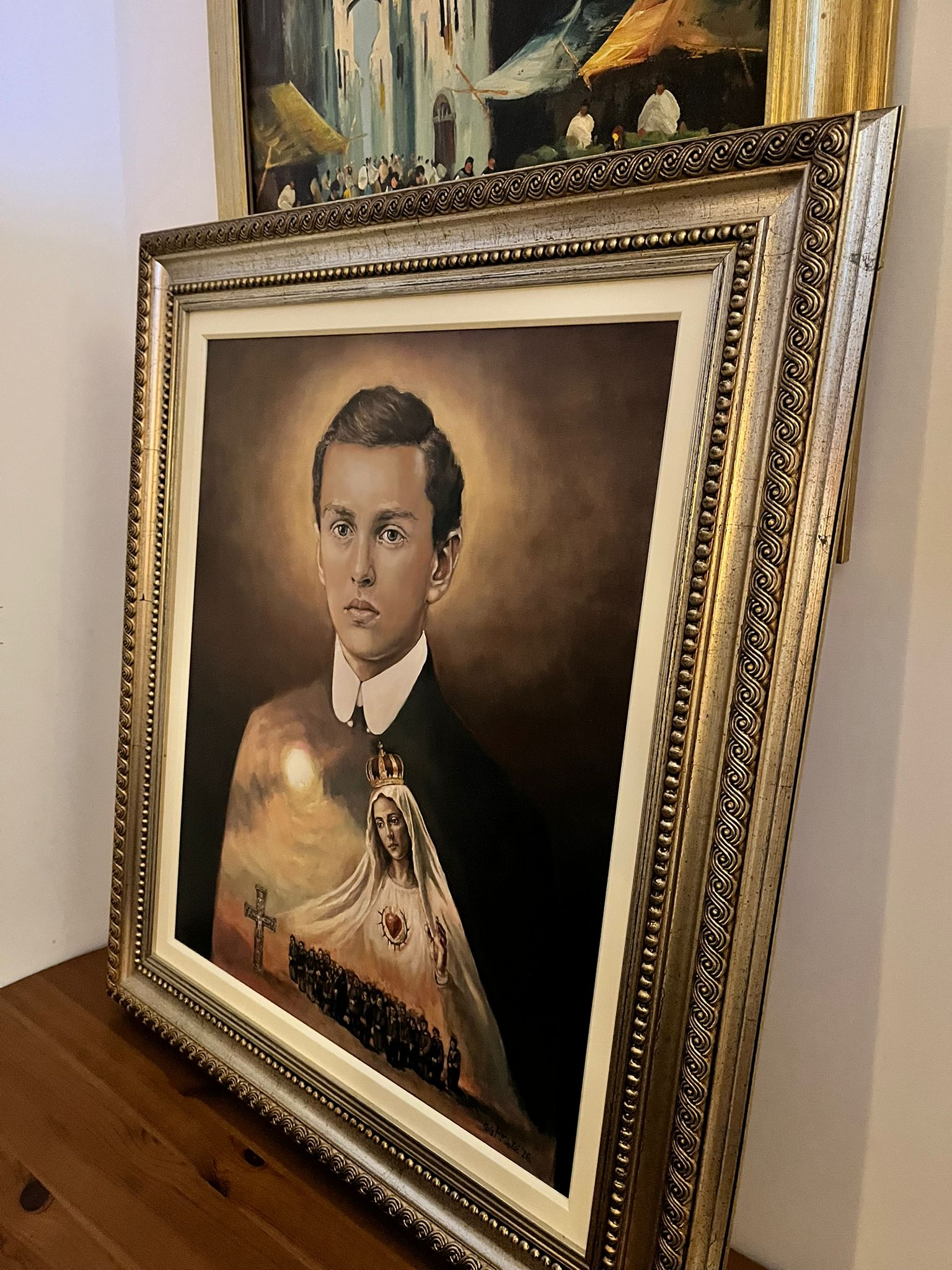 Slika bl. Ivana Merza rad je hrvatske akademske slikarice Iris Mihatov Miočić. Umjetničko djelo, osim prikaza Ivana Merza i molitelja, uključuje i motive Gospe Fatimske te hrvatskog zavjetnog križa, koji imaju posebno značenje za bratstvo i molitelje s trga.