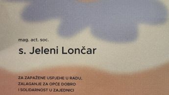 Priznanje struke s. Jeleni Lončar za zapažene uspjehe u radu, zalaganje za opće dobro i solidarnost u zajednici