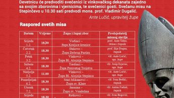 Devetnicu će predvoditi svećenici Vinkovačkog dekanata uz sudjelovanje svojih zborova i vjernika. Devetnica svakoga dana započinje u 18:30 sati.