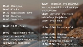 - 16:00 – 17:00 – Kateheza: Bog te oslobađa od okova – Francesco Vaiasuso