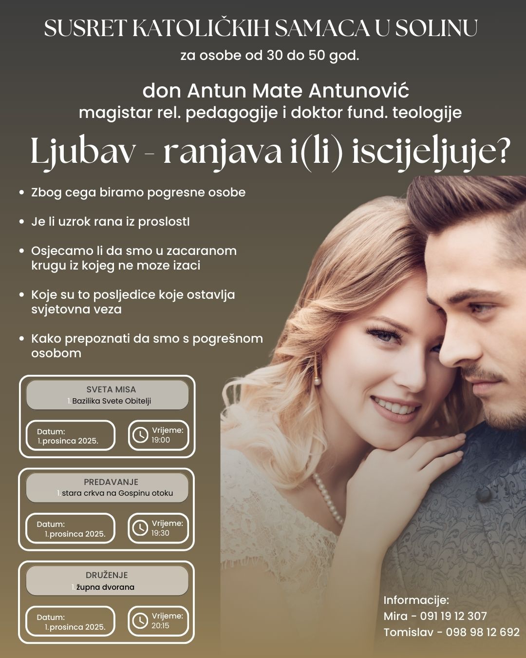 Ako ste sami, a želite se ostvariti u braku, u ponedjeljak dođite u Solin na susret katoličkih samaca.